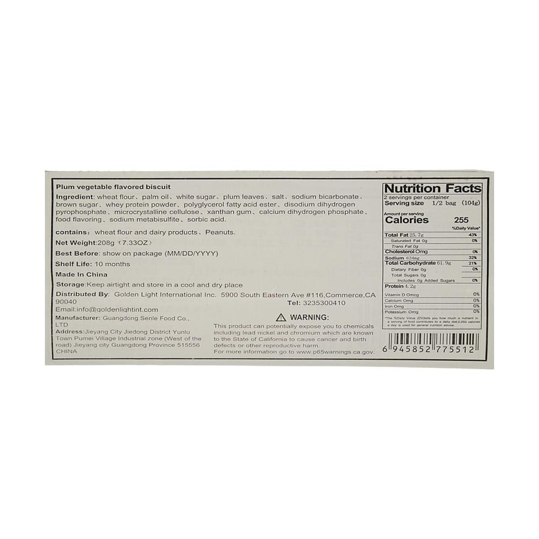 不二情书 梅干脆薄饼干 咸味夹心梅菜饼 梅菜味 208g【小红书爆款】