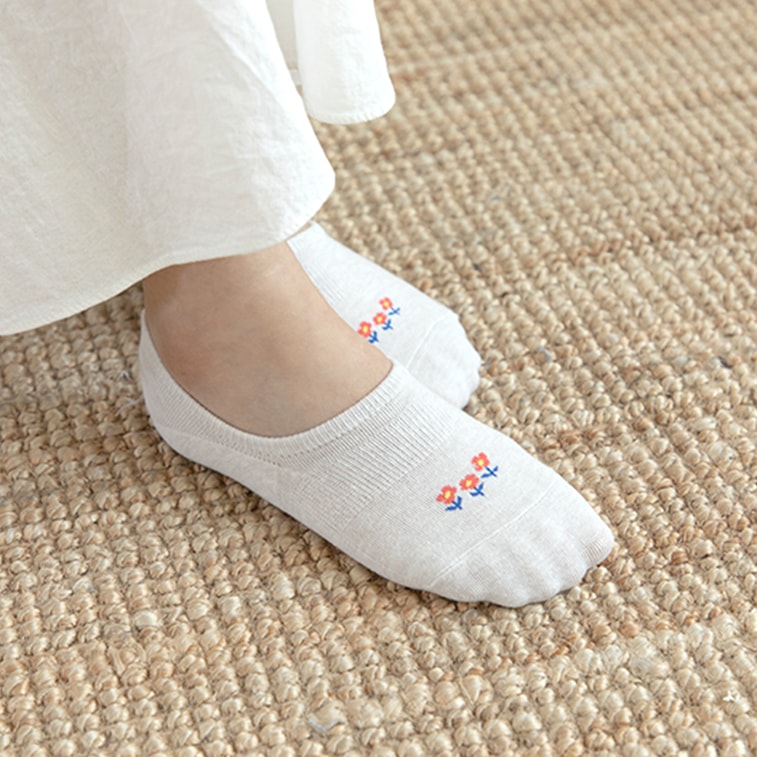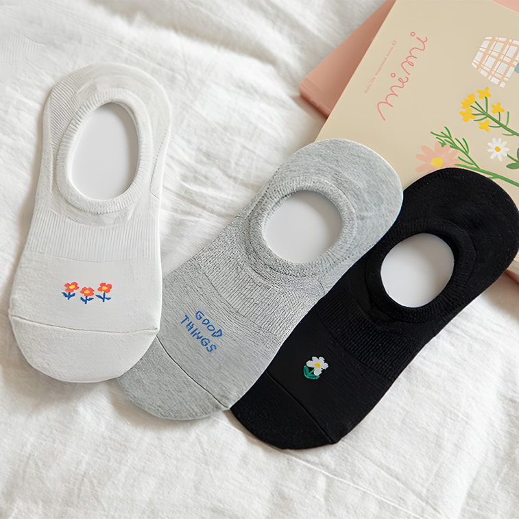 韩国DAILYLIKE 船袜短袜子 四季薄款抗菌浅口 女款 3双 黑白灰 220~250mm 复古花