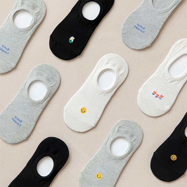 韩国DAILYLIKE 船袜短袜子 四季薄款抗菌浅口 女款 3双 黑白灰 220~250mm 笑脸