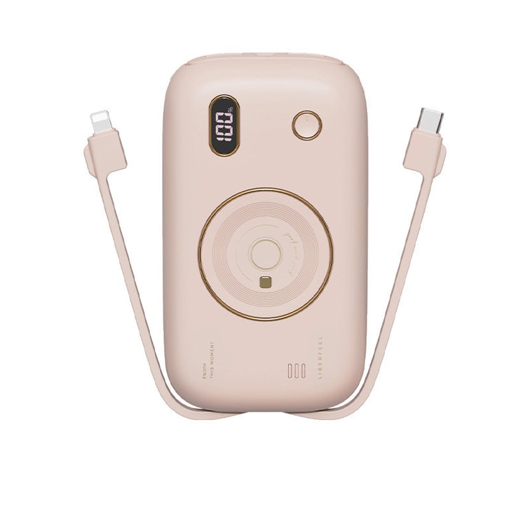 【中国直邮】冇心充电宝自带线三合一20000毫安超薄小巧22W快充适用苹果安卓 淡雅粉