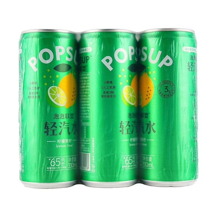 泡泡联盟 益生元轻汽水 柠檬青柠味 330ml*6罐【低卡减负】【添加真实果汁 清爽解腻】