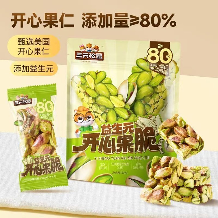 三只松鼠 【益生元】开心果脆 【超大果仁】【超酥脆】无壳【独立小包装】100g【内含9袋左右】【量贩分享装】