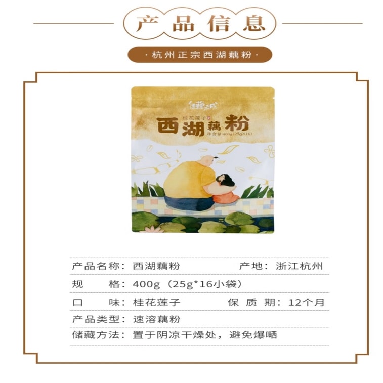 【中国直邮】 万比邻精选 佳藕天成 桂花风味西湖藕粉【桂花莲子口味】 无糖配方 独立小袋速食早餐 杭州正宗莲藕粉 400g