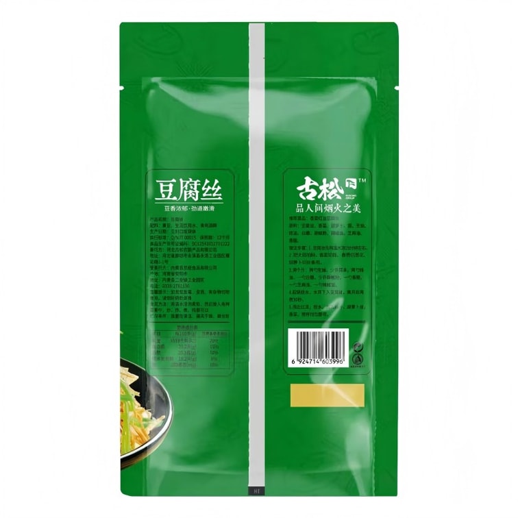 【中国直邮】 古松 豆腐丝 千张腐竹 素食豆制品干货云丝凉拌腐竹千张豆腐皮手工火锅食材商用 豆腐丝150克