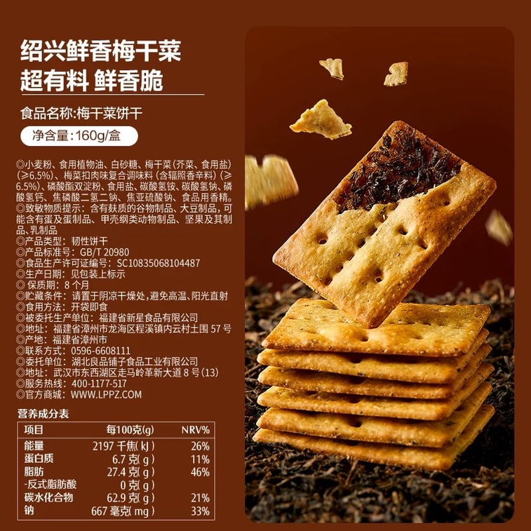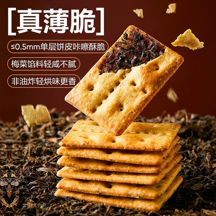 【年货必备】良品铺子 梅干菜薄脆饼干 非油炸 鲜香脆 无敌好吃 160g/盒