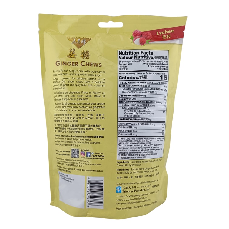 美国 太子牌 荔枝味姜糖 8 盎司 養胃 暖宫 有助消化 純天然 不含麩質