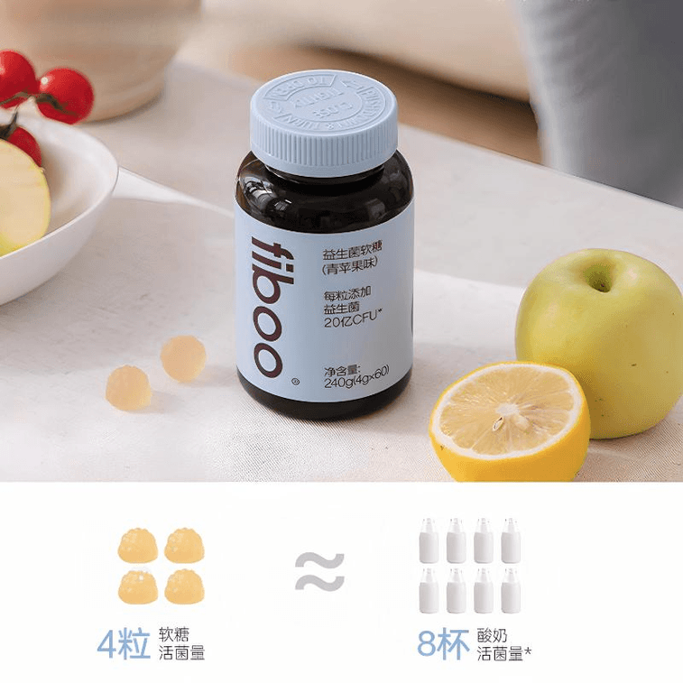 【中国直邮】 FIBOO 益生菌软糖青苹果味 60粒 240g*1盒 | 亚米