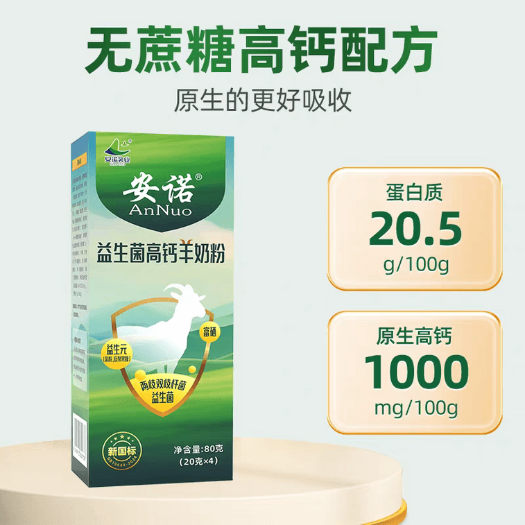 安诺 【无蔗糖高钙】益生菌高钙羊奶粉80g* 2盒 小分子奶粉 乳糖不耐受可用 儿童青少年成人中老年营养配非牛奶【出自世界最好羊奶牧场】