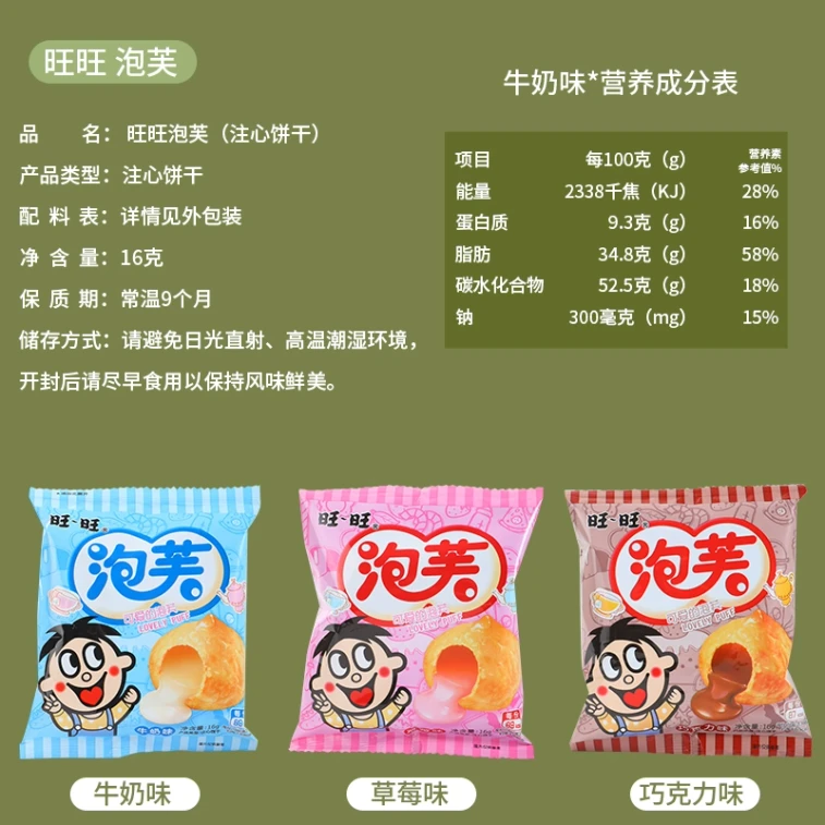 【中国直邮】 台湾 旺旺 泡芙球儿童解馋小零食休闲食品小吃 牛奶、草莓、巧克力各一包 16g*3包