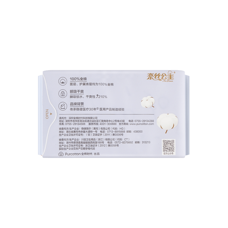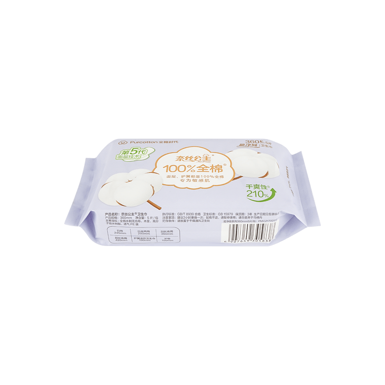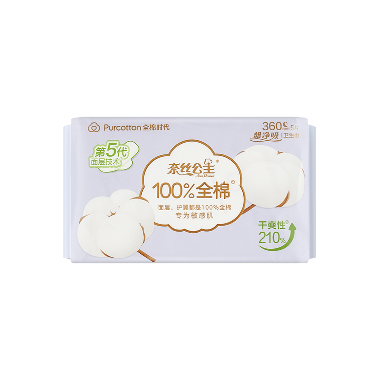 PURCOTTON全棉时代 奈丝公主 超净吸系列亲肤超薄加长夜用 360MM 5片入