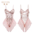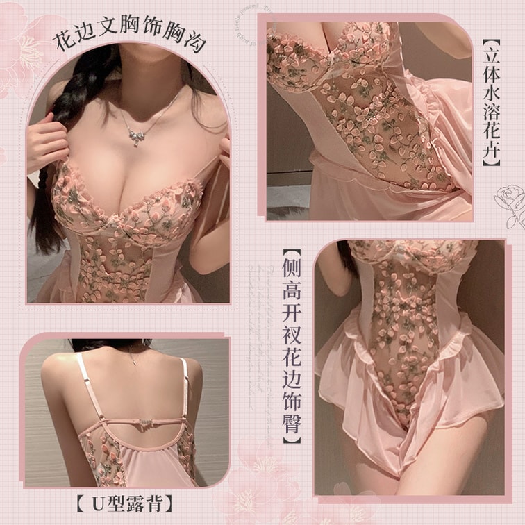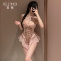 【中国直邮】霏慕 纯欲深V花蔓开裆连体衣情趣内衣芭蕾优雅性感露沟