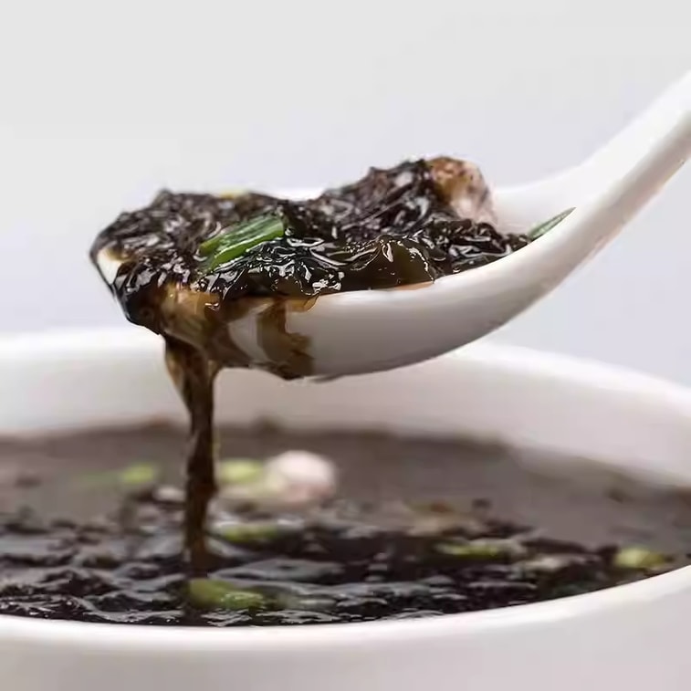 泡开后呈鲜亮青绿色,软嫩不柴,入口爽滑;