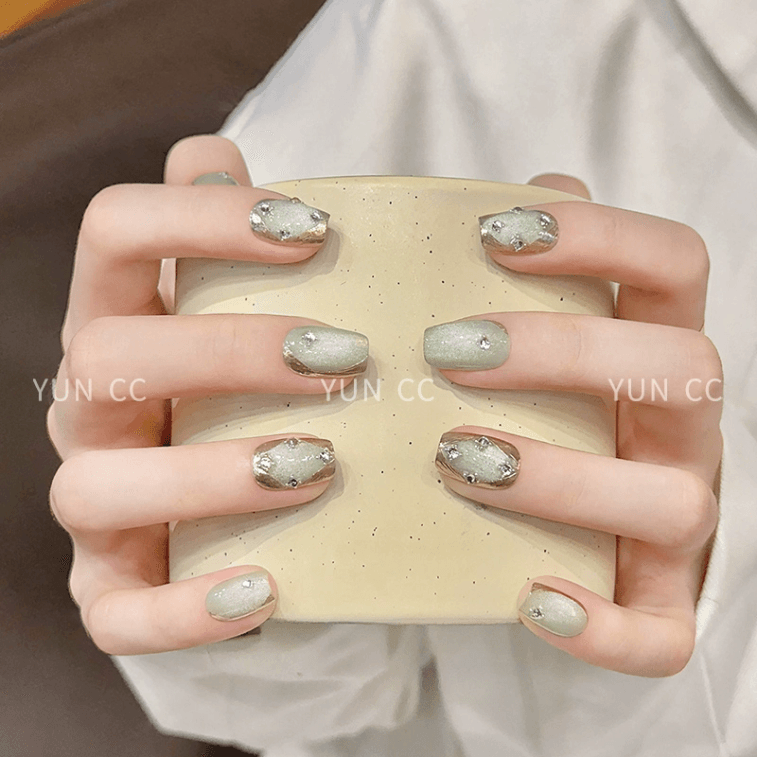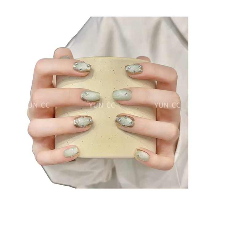 【中国直邮】 云皙 纯手工美甲高级感成品猫眼短款指甲贴片青提奶绿XS10片*1盒