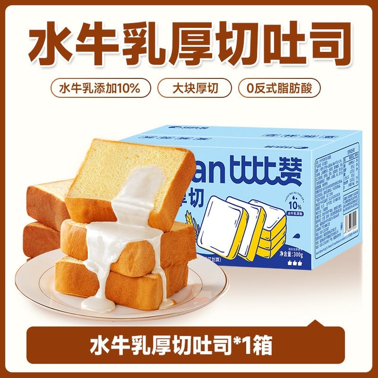 【中国直邮】 比比赞 水牛乳厚切吐司 手撕面包早餐 代餐解馋小零食小吃休闲食品 250g | 亚米