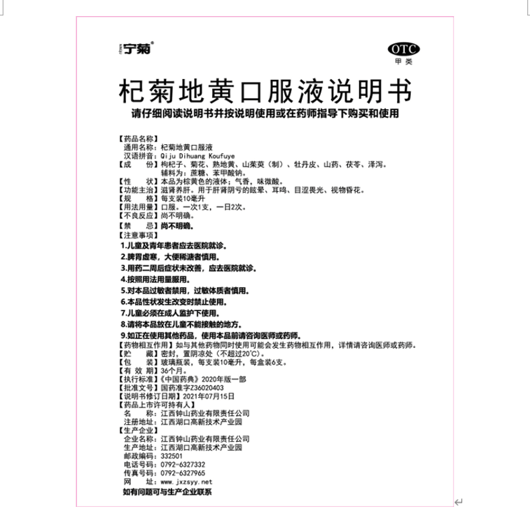 宁菊 杞菊地黄口服液 养肝补肾 清肝火旺盛 缓解明目眼疲劳 10ml*6支/盒