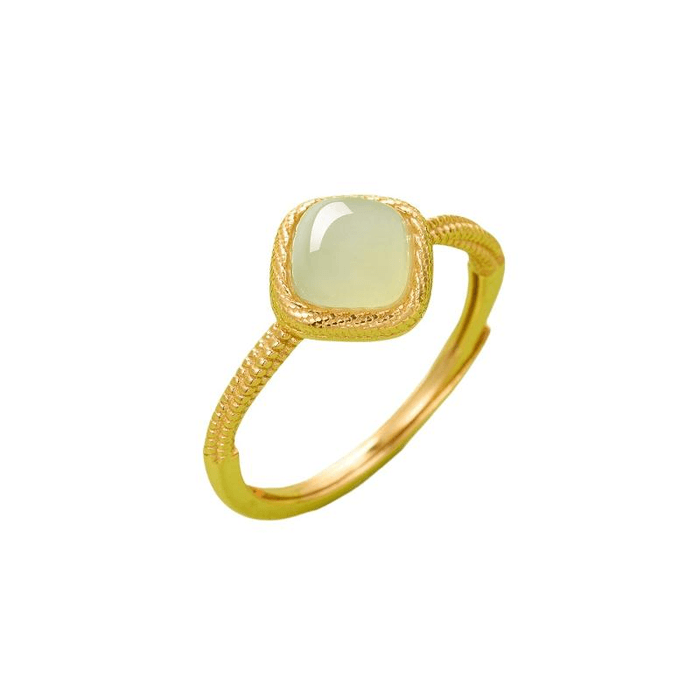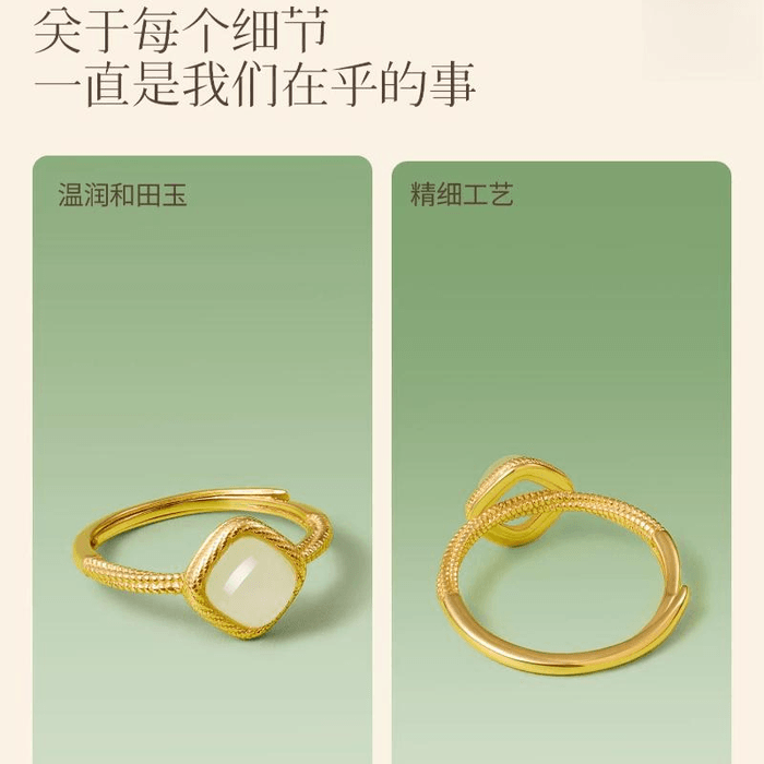 【中国直邮】 普陀山 庆祥泰 亮金时尚简约和田晴水菱形扭麻戒指 6*6mm | 亚米