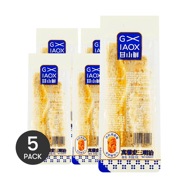 甘小鲜 真藜麦三明治 沙拉肉松味 70g *5【5份超值装】【健康藜麦+厚厚肉松+松软吐司】【0蔗糖0反式脂肪】【营养早餐面包】