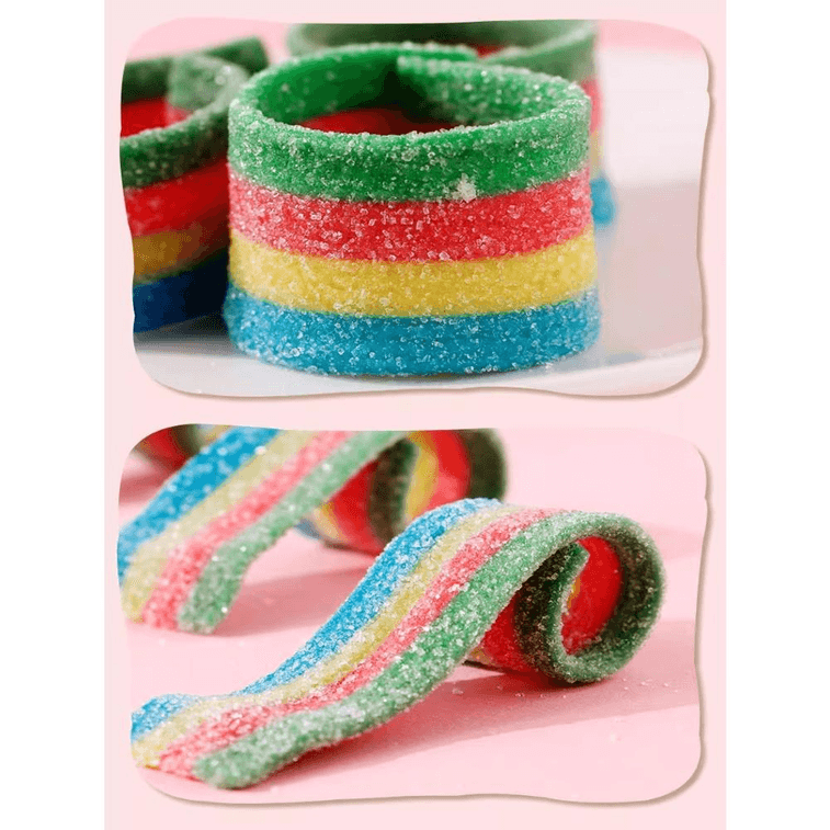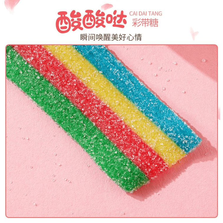 【中国直邮】 廿一研食社 彩带酸条糖果软糖酸甜果汁长条彩虹橡皮糖儿童节小零食90g*2袋