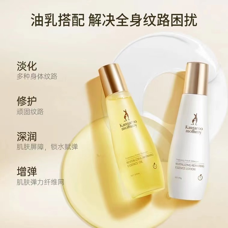 【中国直邮】 袋鼠妈妈 有效淡纹 快速改善身体纹 舒纹修护精华油120ml+舒纹修护精华乳120g
