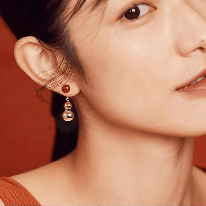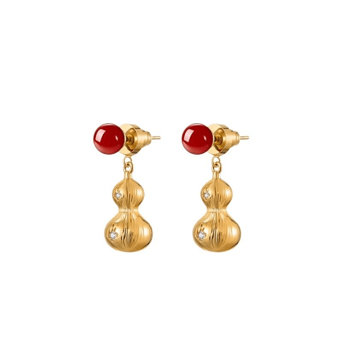 【中国直邮】 ZENGLIU 红玛瑙金色葫芦耳钉女925银针新中式耳环设计感气质新年耳饰*1件