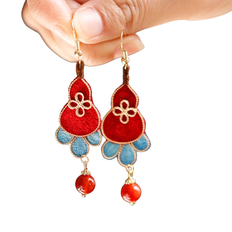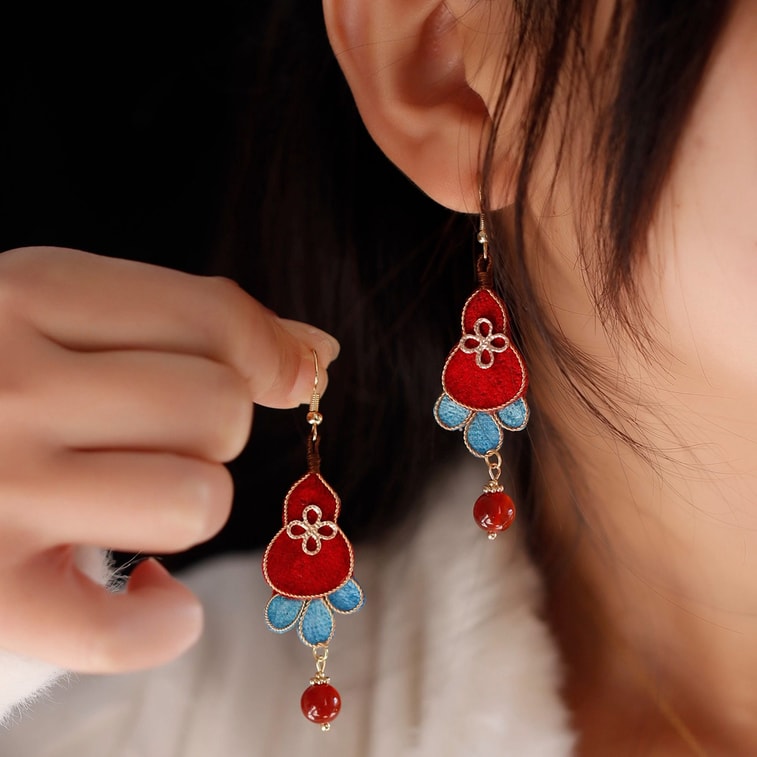 【中国直邮】 HSPM 红色耳饰中式独特漂亮耳环女小众设计感高级气质百搭葫芦古风旗袍 红色葫芦 F 1对