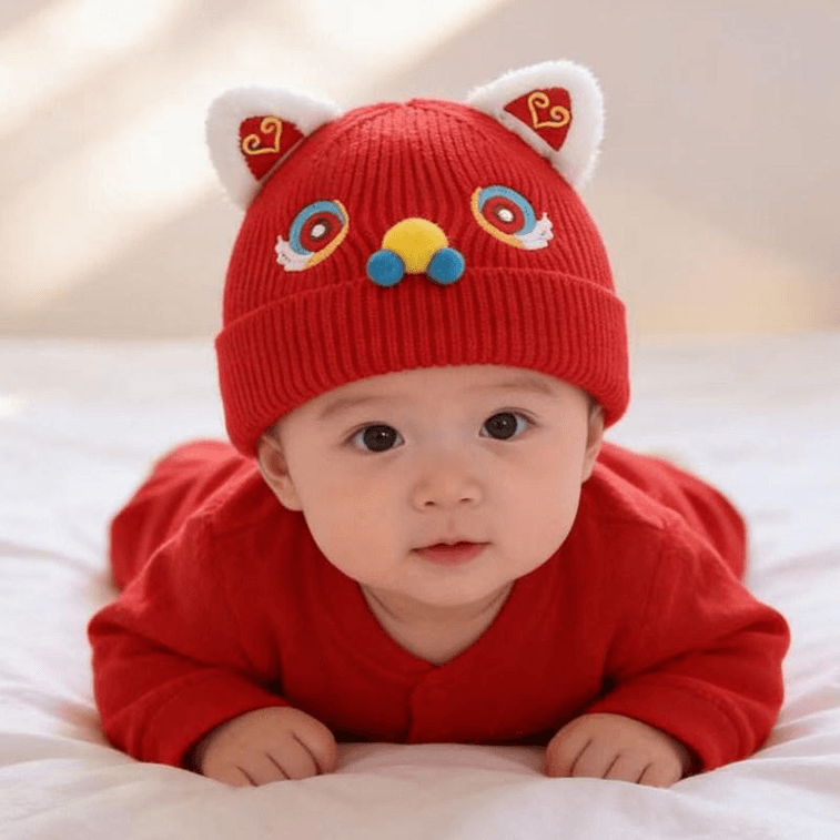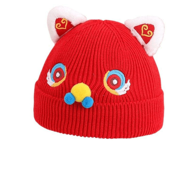 【中国直邮】 西坞 红色新年帽子婴幼儿宝宝针织毛线帽保暖防风鼻子龙款2-12个月帽围40-46cm*1件