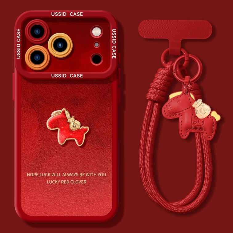 【中国直邮】 优思顿 【红色晕染小马+小马挂绳】皮质软壳手机壳 适用于苹果17 2026新款手机链