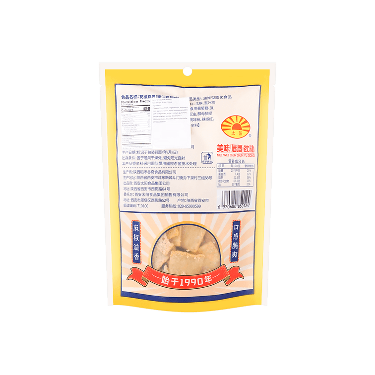 太阳锅巴起源于1990年,是中国最早生产锅巴的品牌