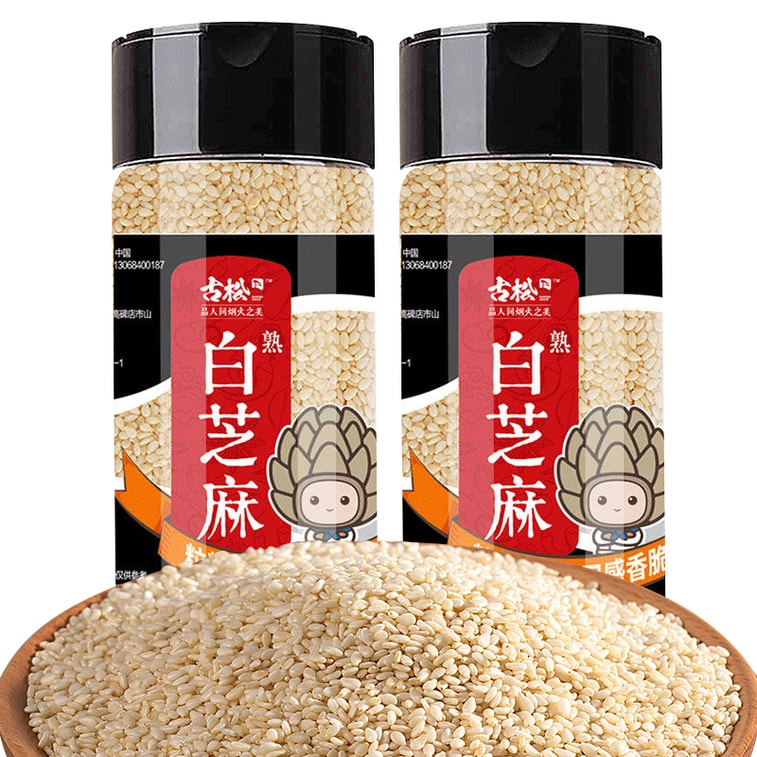 古松 【超值两瓶精美瓶装】低温烘焙熟白芝麻168g*2 五谷杂粮免洗烘焙熟芝麻即食烘焙原料调料即食芝麻粒【皮薄肉厚、芝香饱满】颗粒完整、大小均匀