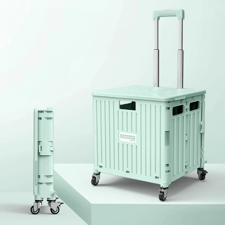 小帮手 买菜购物拉货可折叠便携轻便小推车 四轮万向轮 带盖板 65L 绿色
