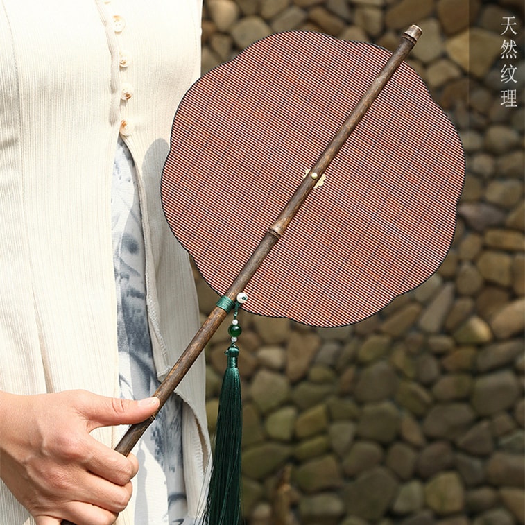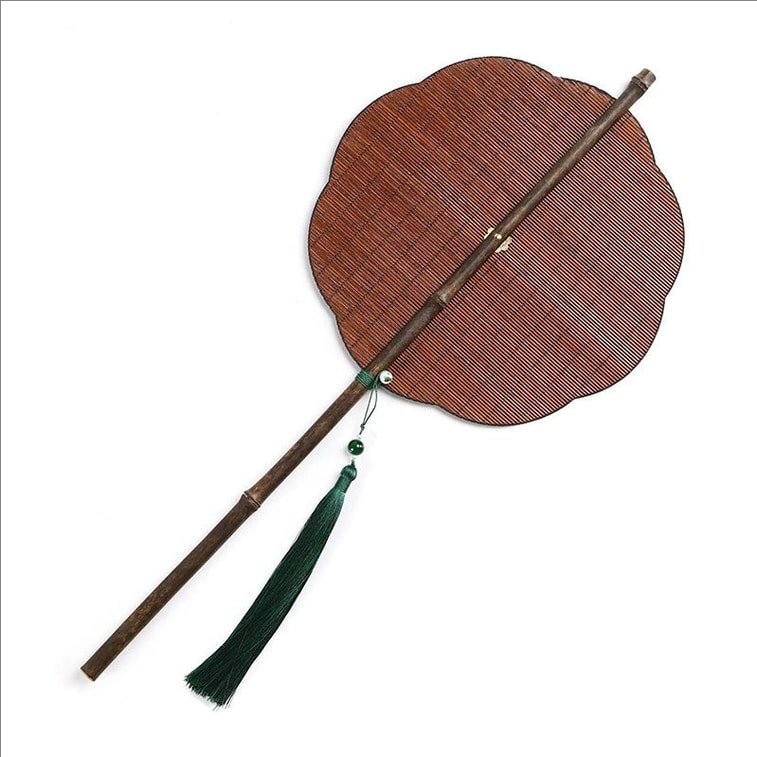 FaSoLa Life 中式大漆团扇 梅花款 咖色 1把 可卷曲折叠 古风汉服 纳凉蒲扇 手工竹编 腰扇