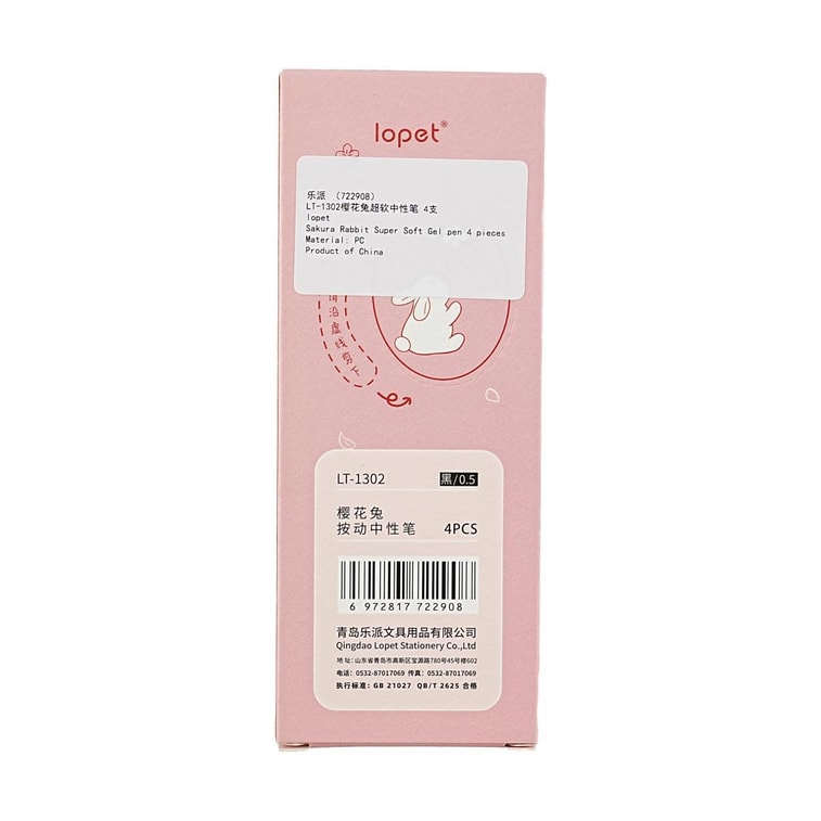 乐派 樱花兔超软中性笔 舒适笔握不磨手 黑色水笔 4支