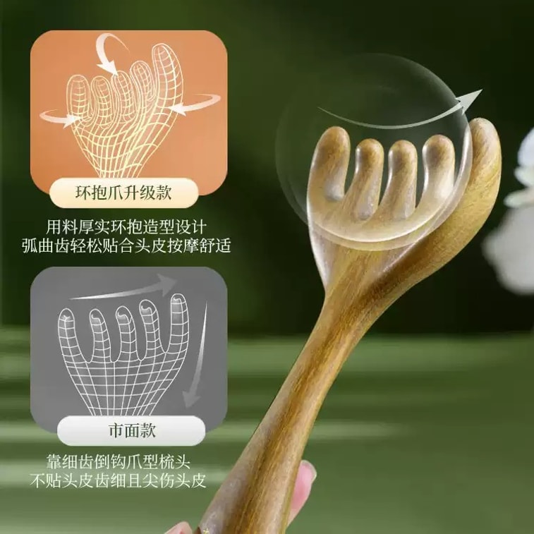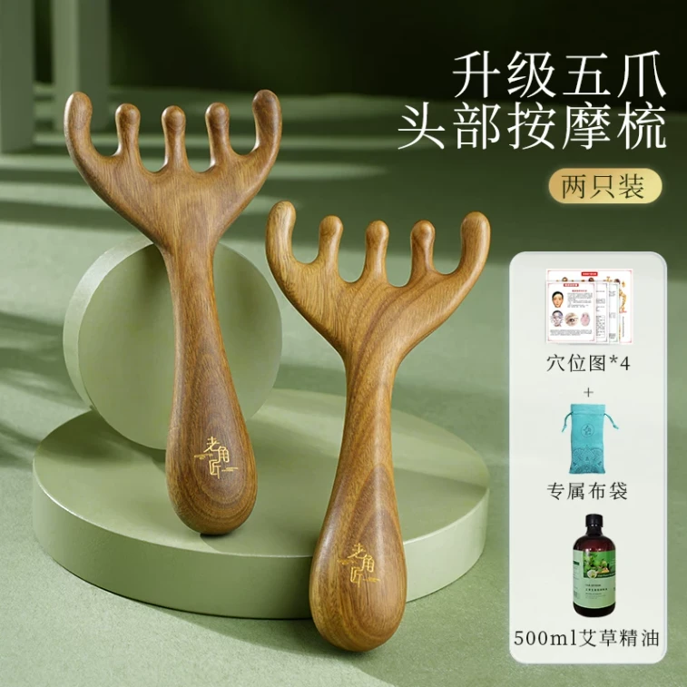 【中国直邮】 老角匠 檀木五爪头部按摩经络梳*1件 | 亚米