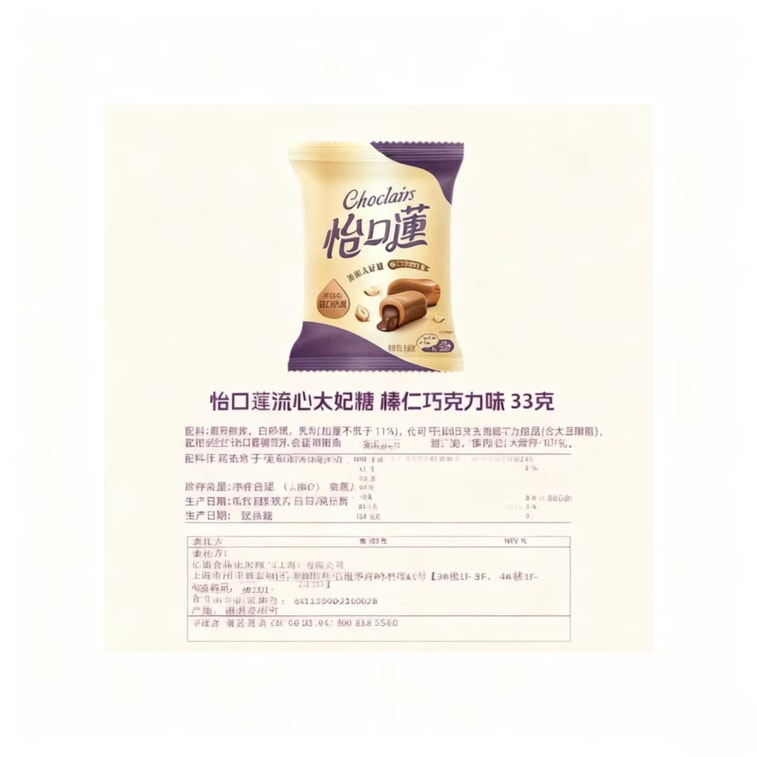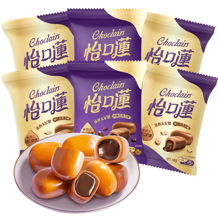 怡口莲 夹心太妃糖原味榛仁巧克力味奶糖【内混装3包】约100克*1包