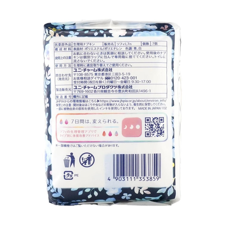 日本UNICHARM尤妮佳 苏菲温柔肌棉柔卫生巾 量大夜用有护翼型卫生巾 40cm 7片入 敏感肌