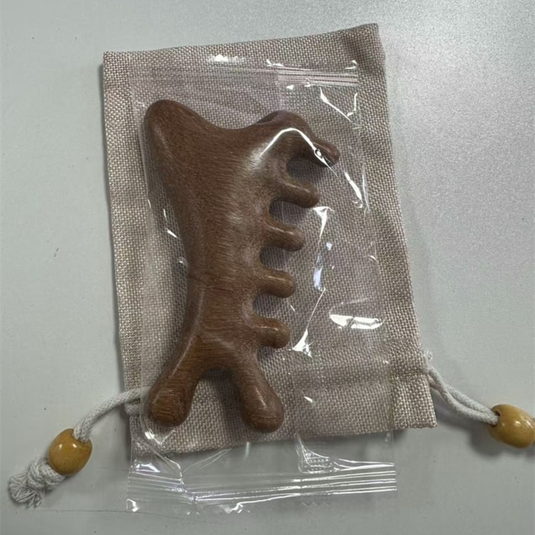 正大 刮痧板多功能四合一檀木梳头部脸部头皮刮痧神器按摩梳子1个装