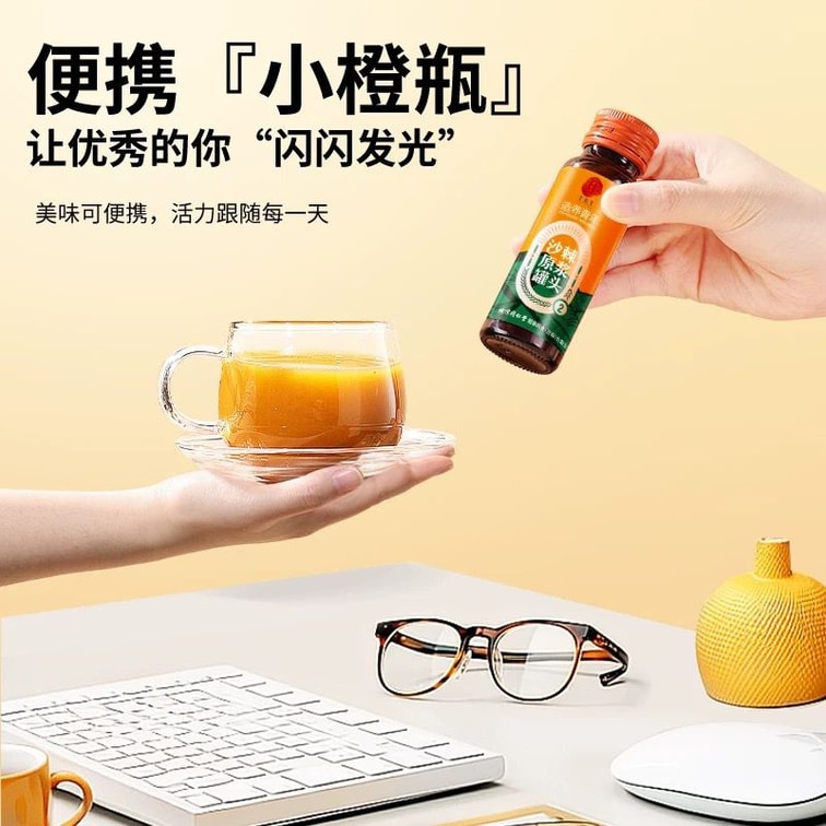 甄选优质沙棘果,采用低温压榨工艺提取原汁,100%纯原浆,不稀释、不调味,完整保留果实的营养活力。