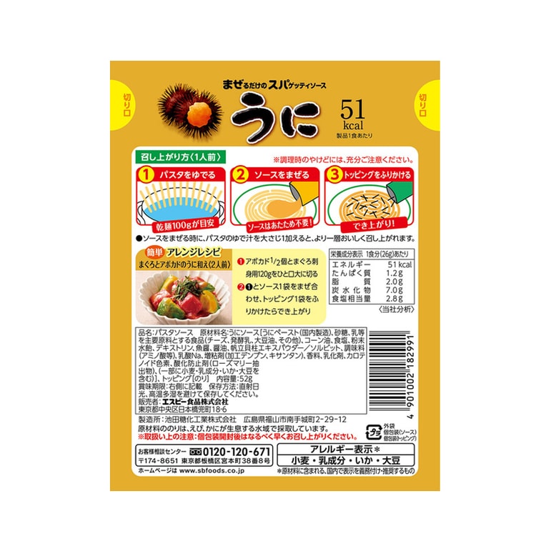 【日本直邮】日本S&B 海胆 意大利面酱调料 2食分 52g
