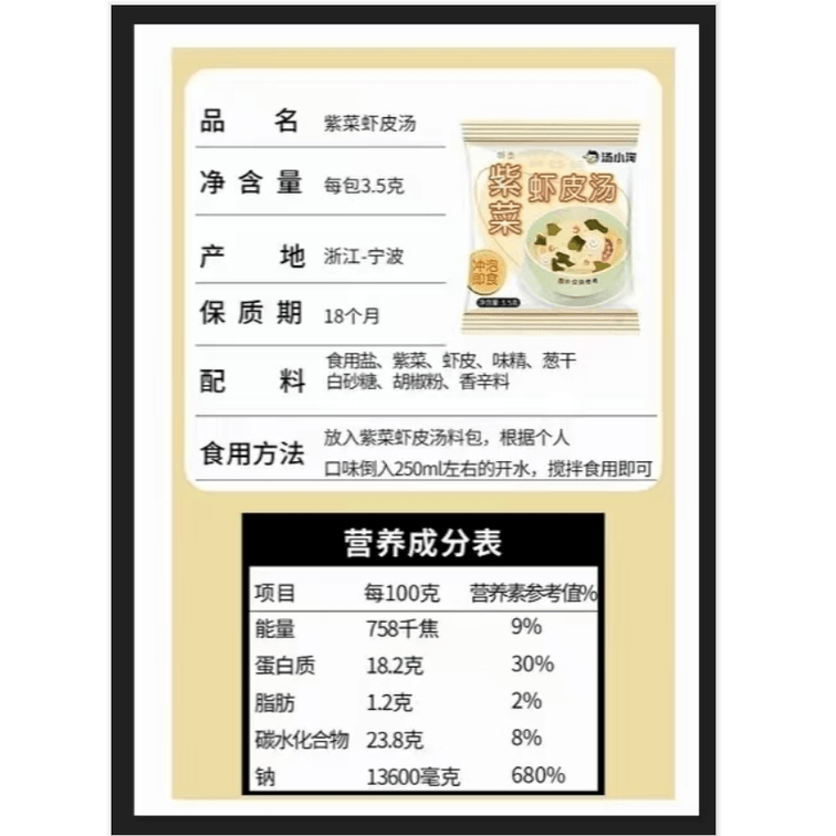 汤小淘 紫菜虾皮速食汤汤料包独立小包冲泡即食 3.5g*10包