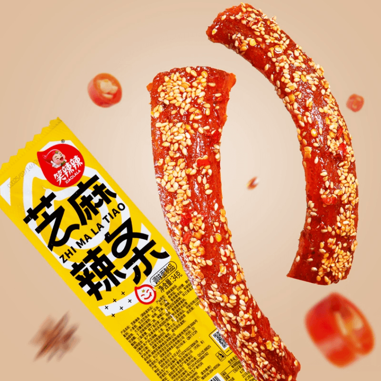 【中国直邮】 笑辣辣 芝麻辣条小包装面筋休闲食品怀旧校园辣棒麻辣解馋小吃零食 15g*5条