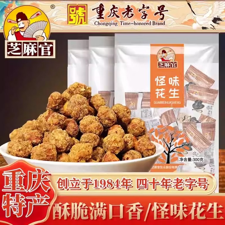 【中国直邮】 芝麻官 重庆怪味花生 300g 独立小包装休闲追剧解馋小零食