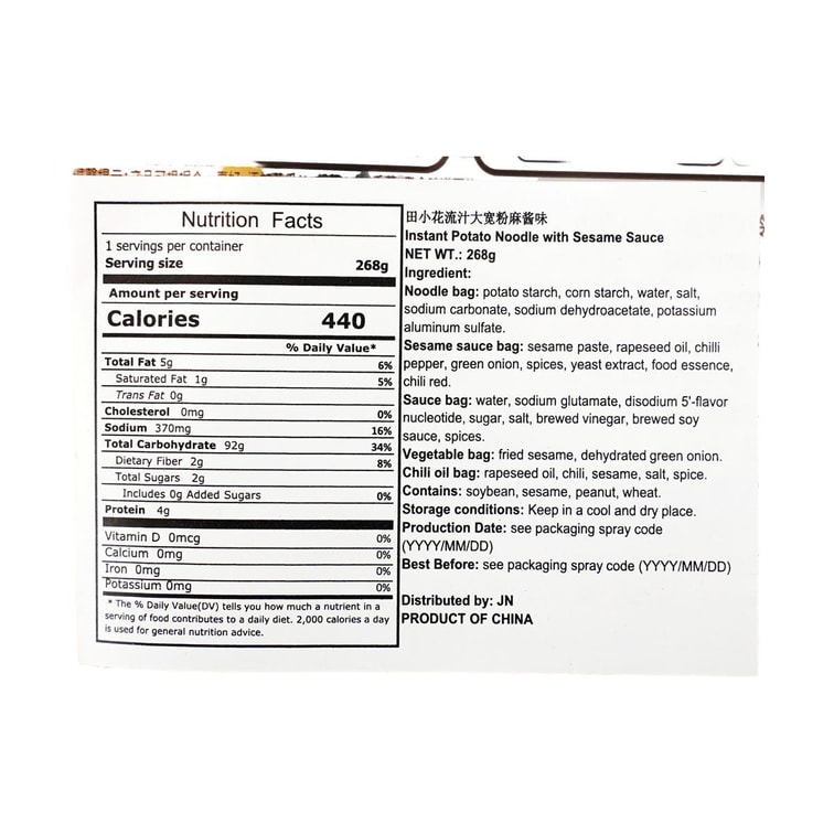 田小花 流汁大宽粉 土豆粉 麻酱味 268g 新老包装随机发货【网红爆款】【免泡即煮即食】