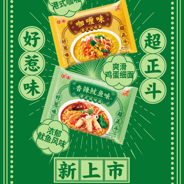 【中国直邮】 华丰 三鲜伊面方便面 香辣鱿鱼味 & 咖喱味 泡面组合混搭速食拉面食品夜宵零食午餐 97g+98g