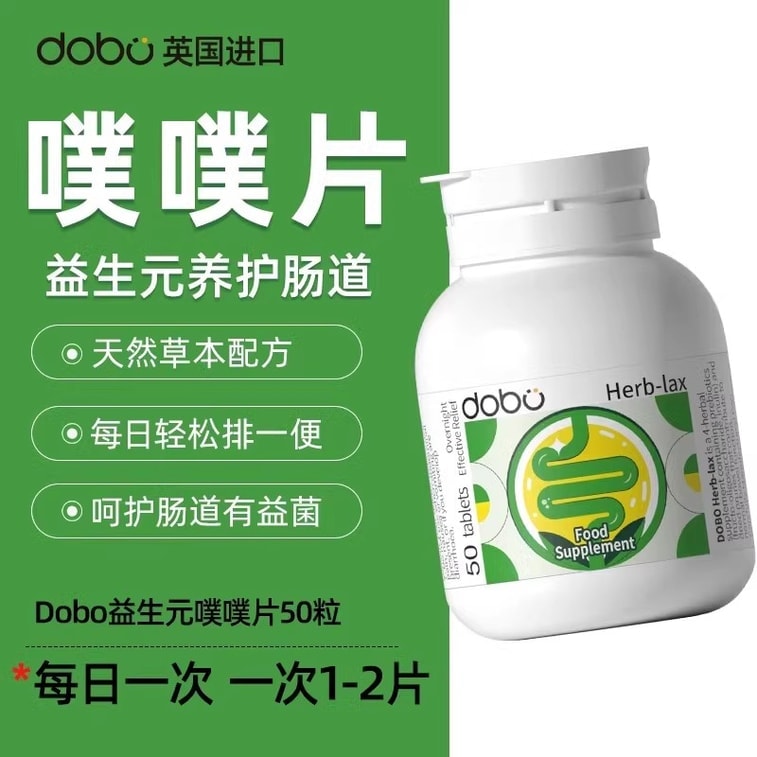【中国直邮】 英国 DOBO 西梅菊粉草本噗噗片 便秘排便清肠 温和养护 健康噗噗 50粒/瓶