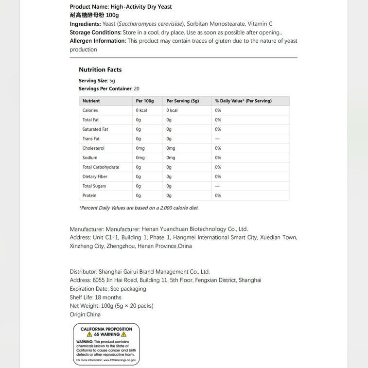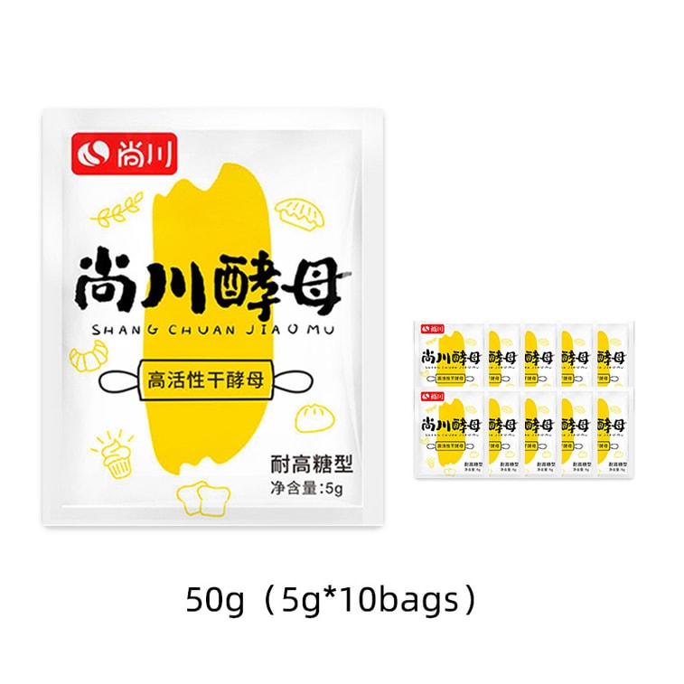 尚川 耐高糖酵母 高活性 发酵快速 面团发酵快速稳定 10袋50g【亚洲风味的甜面包 港式吐司 豆沙包 奶黄包 甜点面团 丹麦酥 可颂】