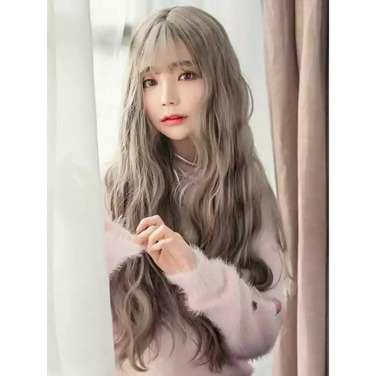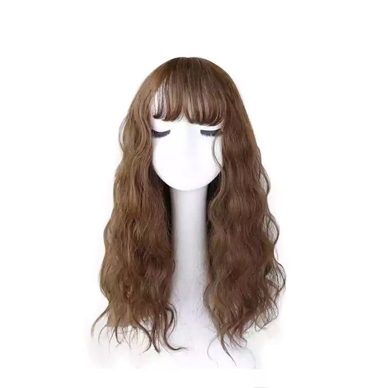 【中国直邮】尚青丝 长波浪羊毛逼真空气刘海泡面长卷发头套 60cm焦糖色(中长款)1件 | 亚米