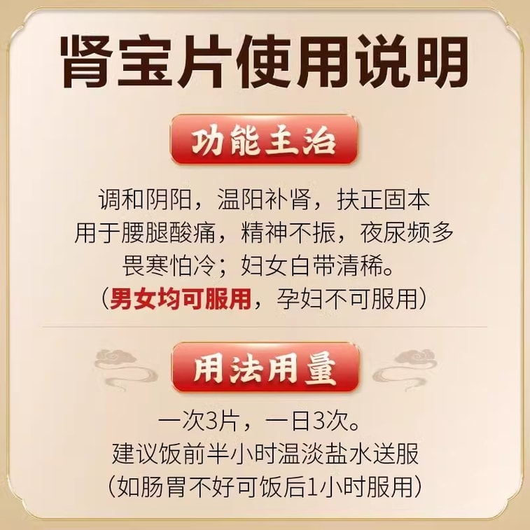 【中国直邮】 汇仁 肾宝片 补精强肾补肾固精肾虚男补品男用肾宝126片/盒