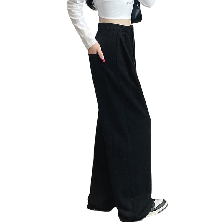 【中国直邮】 HSPM 羊羔绒运动裤 秋冬宽松束脚棉裤 加厚保暖休闲阔腿裤 直筒加绒卫裤 黑色羊羔绒加长款 XXL 1条装