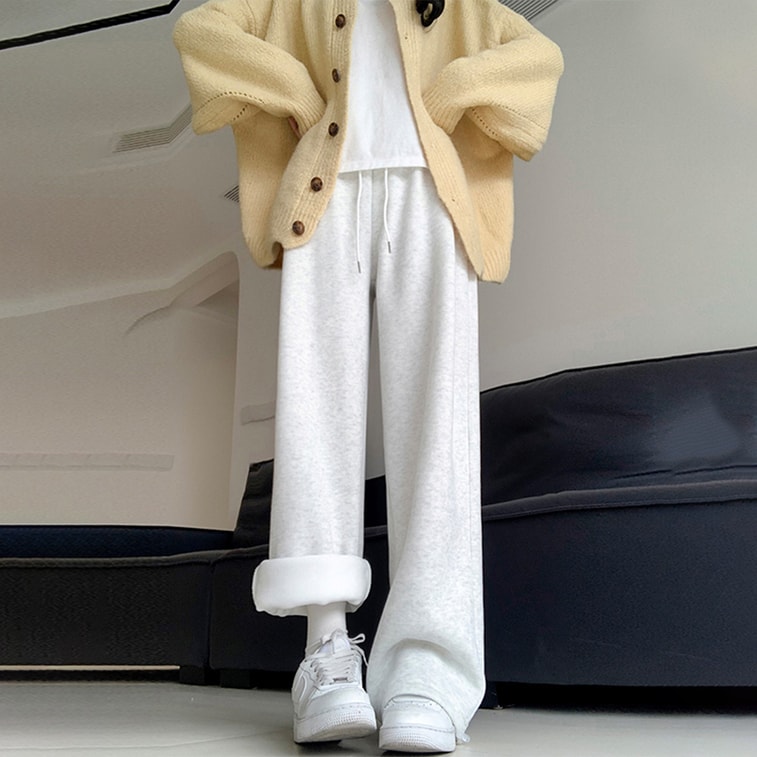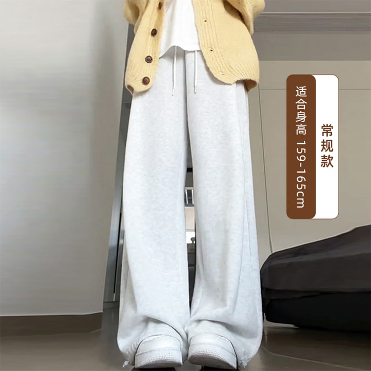 【中国直邮】 HSPM 羊羔绒运动裤 秋冬宽松束脚棉裤 加厚保暖休闲阔腿裤 直筒加绒卫裤 白灰色羊羔绒常规款 S 1条装