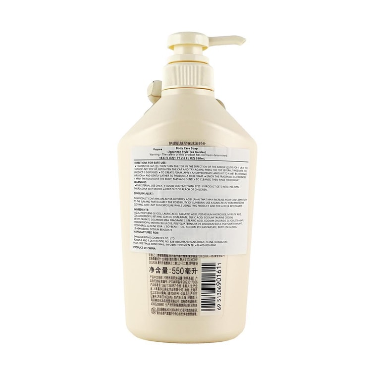 日本FINETODAY KUYURA可悠然美肌沐浴露 大黄瓶香氛氨基酸沐浴乳液 微米级泡沫 550ml 留香清洁保湿 #和风茶庭 550ml
